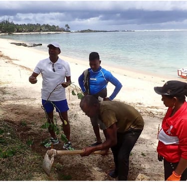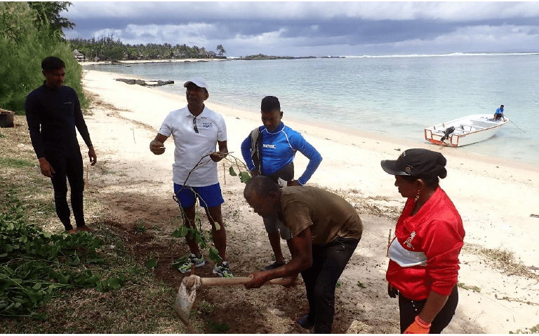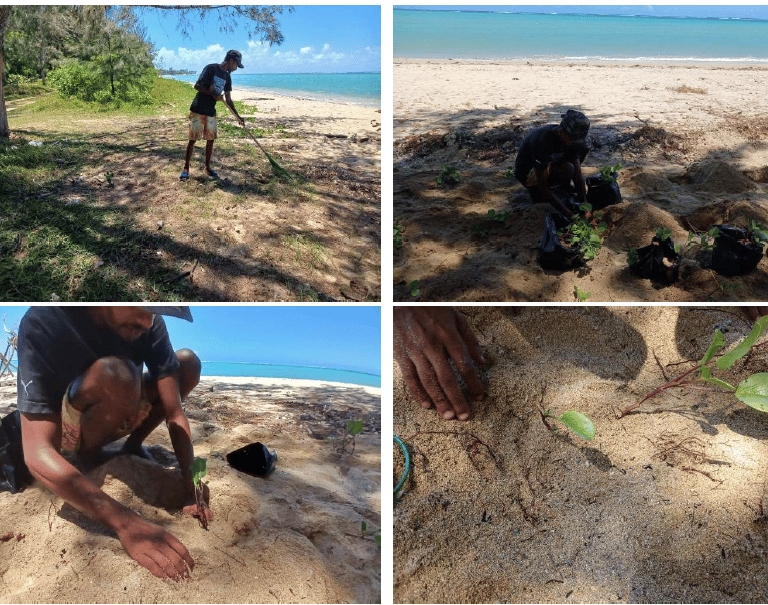 Coastal erosion is one of the most pressing environmental challenges facing Mauritius. With sandy beaches rapidly retreating due to climate change, human activities, and natural weather events, urgent action is needed to protect these fragile ecosystems. In response, CGC launched the Liane Batatran Project, an innovative nature-based solution aimed at restoring degraded beaches. By using Ipomoea pes-caprae, commonly known as Beach Morning Glory, CGC has successfully stabilised shorelines, enhanced biodiversity, and engaged local communities in sustainable coastal conservation efforts. The project, which was supported by the UNDP Ocean Innovation Challenge, with funding from Sida and Norad. focused on five critical sites—St. Felix, Baie du Cap, Baie du Jacotet, Le Morne, and Bel Ombre—where extensive environmental assessments were conducted to determine the best locations for restoration. A total of 19,000 Ipomoea pes-caprae plants including cuttings, seedlings and nursery-grown propagules were propagated and transplanted across 0.22 hectares of beach. The selection of this plant was strategic, as its extensive root system helps anchor sand, preventing erosion while supporting the natural dynamics of coastal ecosystems.