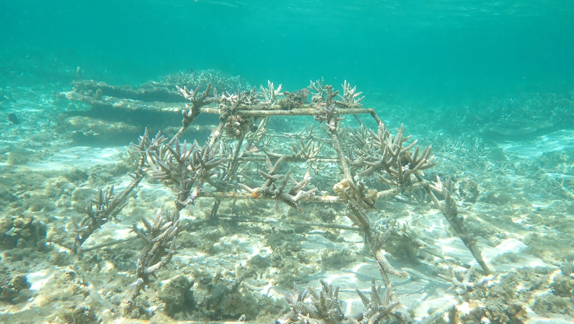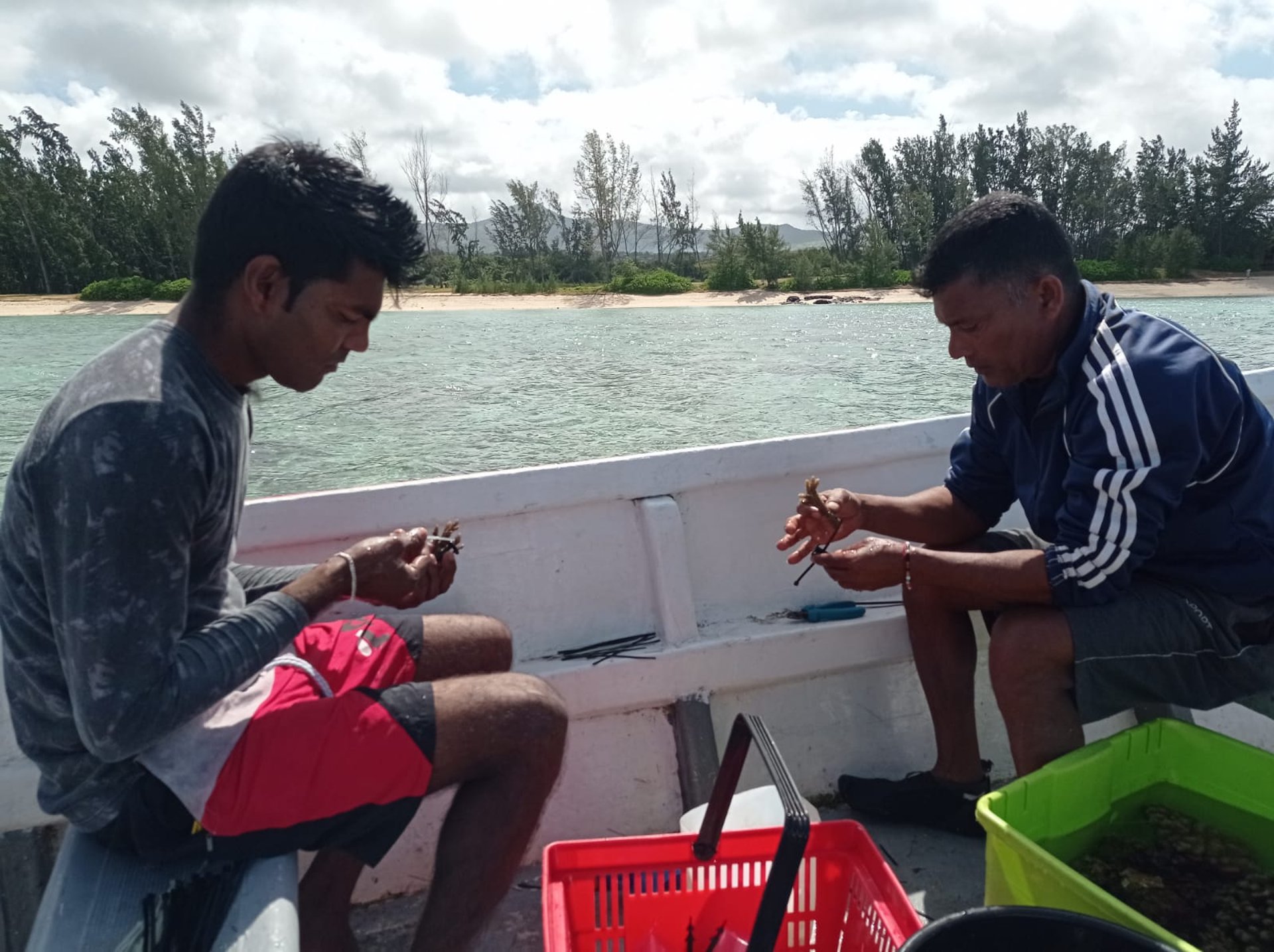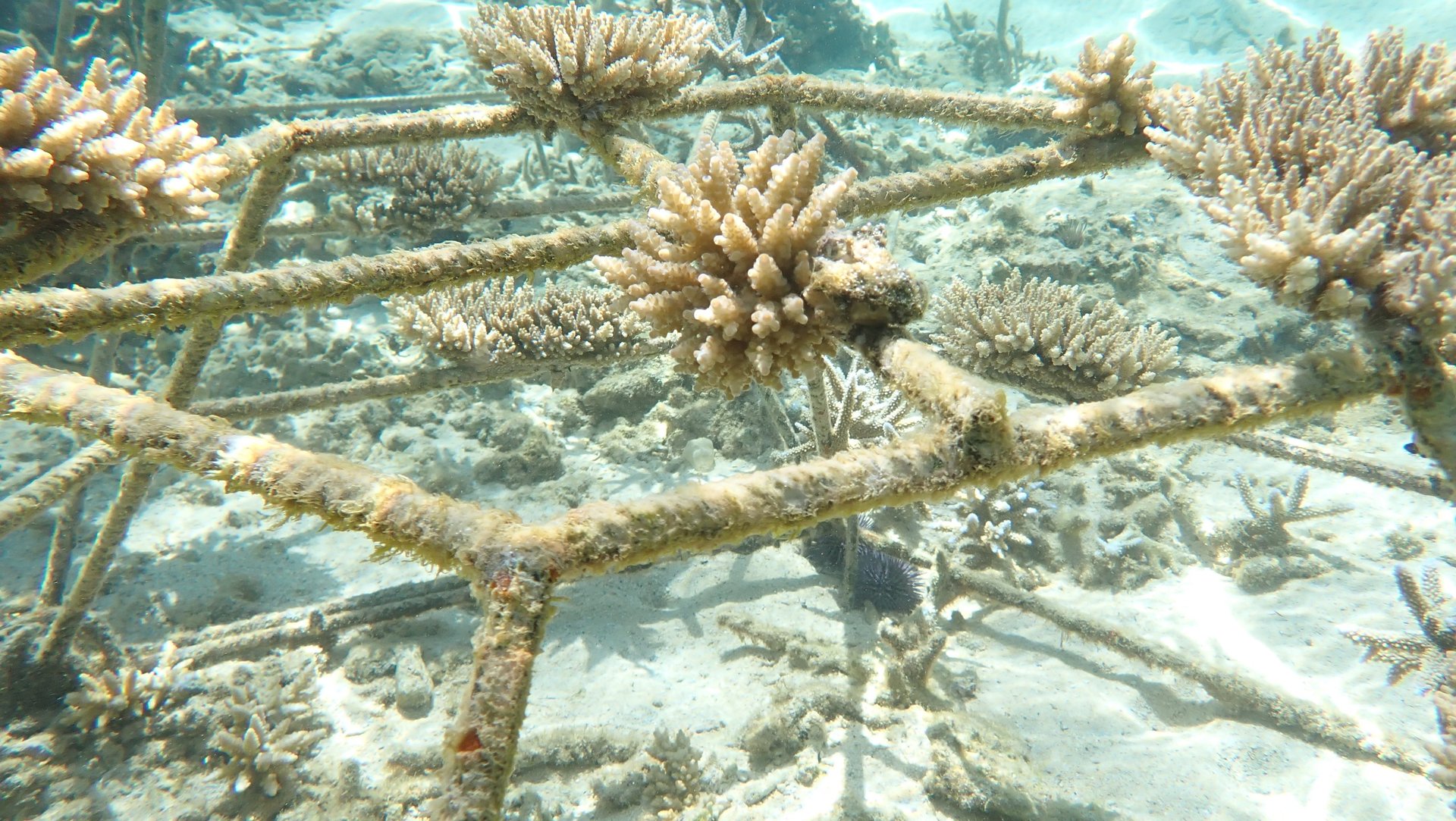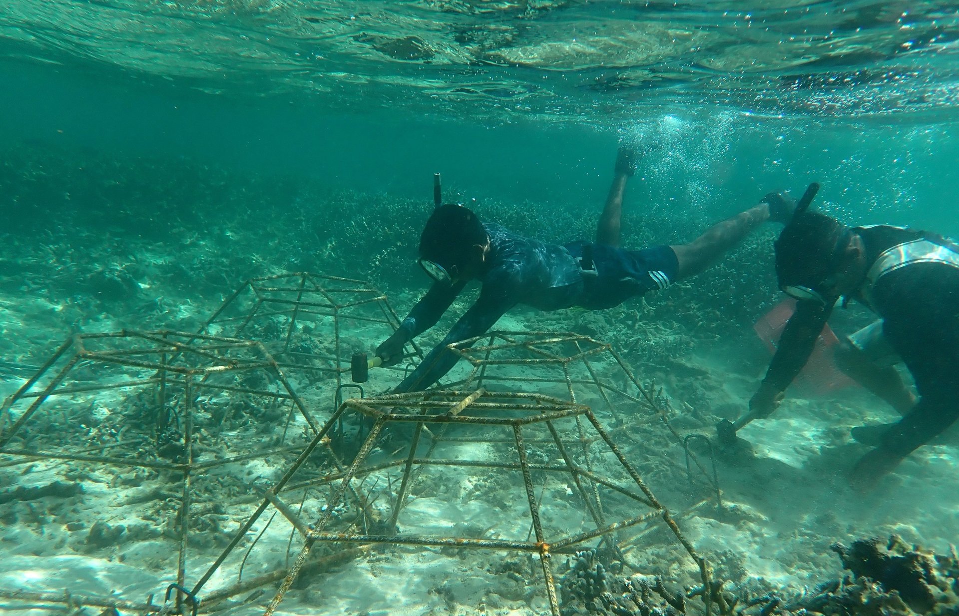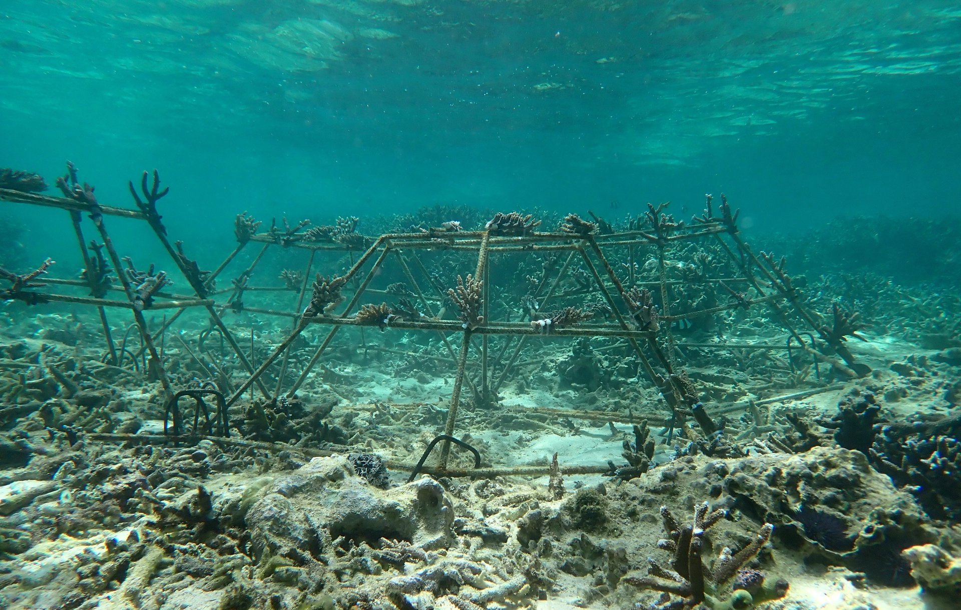 The project centred on innovative coral restoration techniques to maximise success rates while fostering community engagement. CGC established two operational coral farms, where COPs—coral fragments broken off due to human activity or natural disturbances—were collected, fragmented, and prepared for transplantation. These corals were acclimatised in nurseries before being transplanted onto degraded reef sites using various techniques, including attachment with epoxy, plastic nails, and spider-frame structures. Additionally, the project incorporated community involvement, training five local fishers in coral restoration techniques. Beyond direct participants, over 50 community members from St. Felix and Rivieres de Galets were sensitised on coral reef conservation through awareness programs. To ensure long-term impact, CGC has set up two dedicated monitoring stations to track coral growth, survival rates, and fish biodiversity improvements in restored areas.