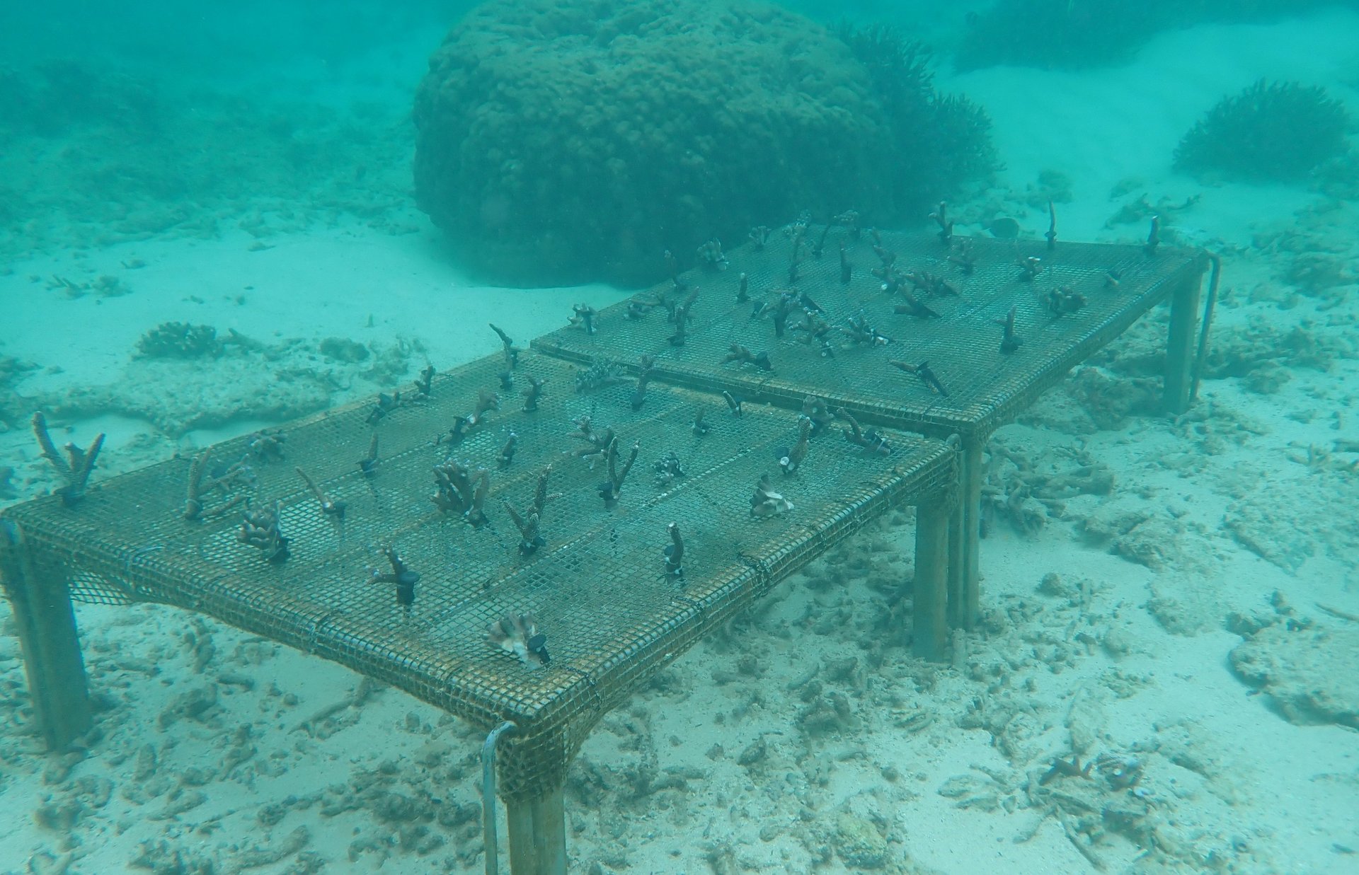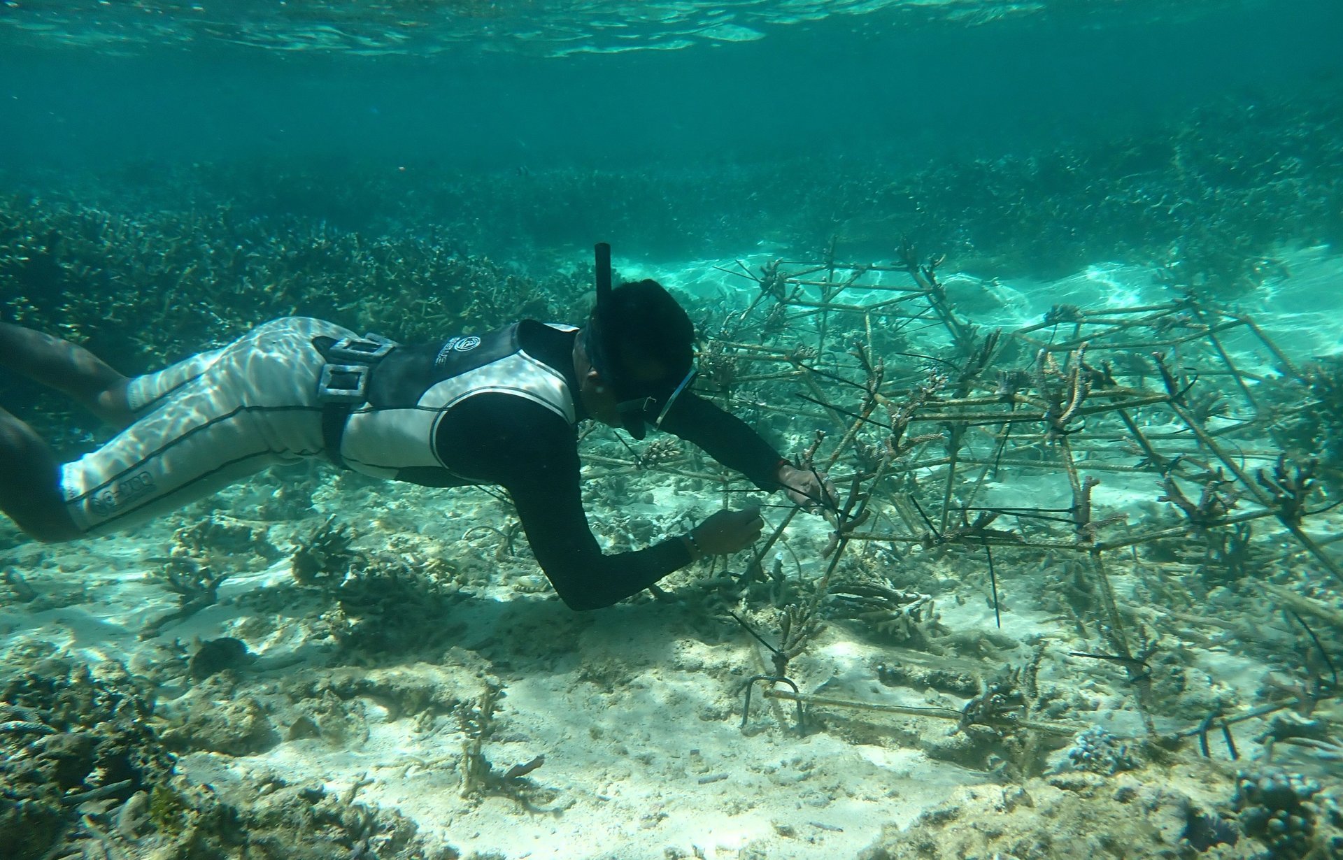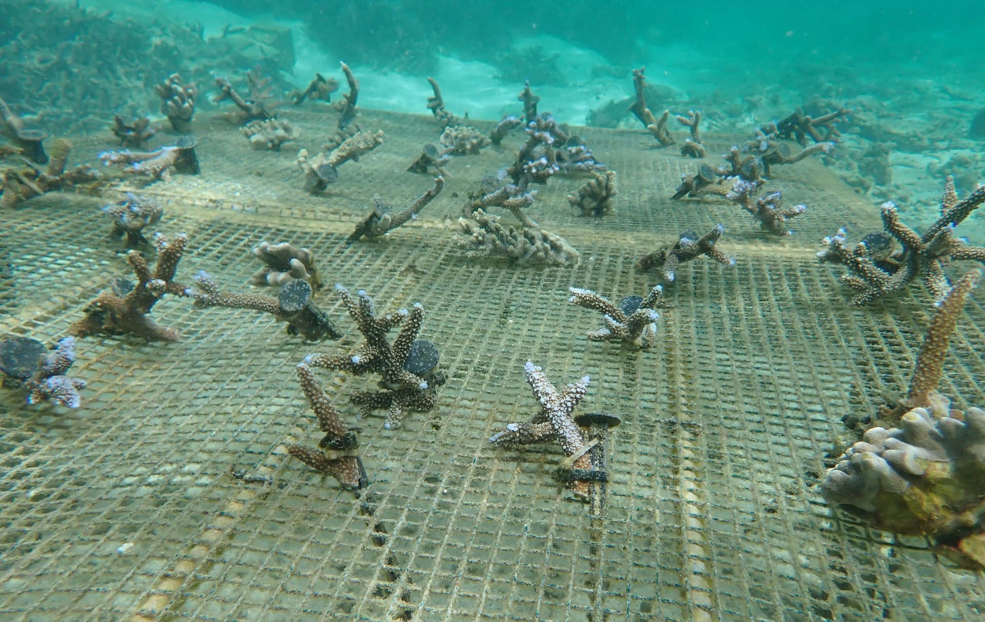 The project achieved significant milestones in reef restoration and community empowerment. Over 800 coral fragments were successfully propagated and transplanted onto degraded reef sites. This included 10 spider-frame coral gardens, each populated with 30 coral fragments, as well as two fully operational coral nurseries housing over 400 coral fragments. Additionally, 100 nursery-grown coral fragments were transplanted directly onto reef sites using underwater drilling and epoxy cement techniques. The survival rates of transplanted corals exceeded 75%, demonstrating the effectiveness of the restoration methods. Beyond coral revival, the project had a direct impact on marine biodiversity. Fish species richness at degraded sites increased from just six species to 22 species following restoration efforts. Monitoring data also showed the return of key fish species such as Epinephelus and Lethrinus, indicating that the restored coral structures were providing essential habitats for marine life.