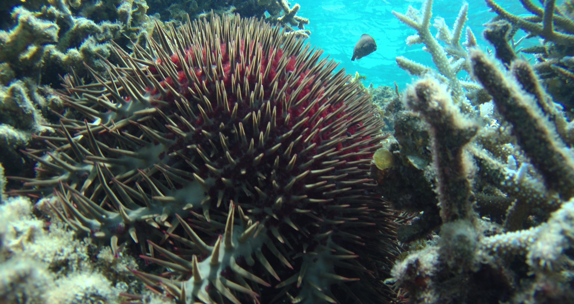Observe safely from a distance, especially if untrained — COTS have venomous spines.